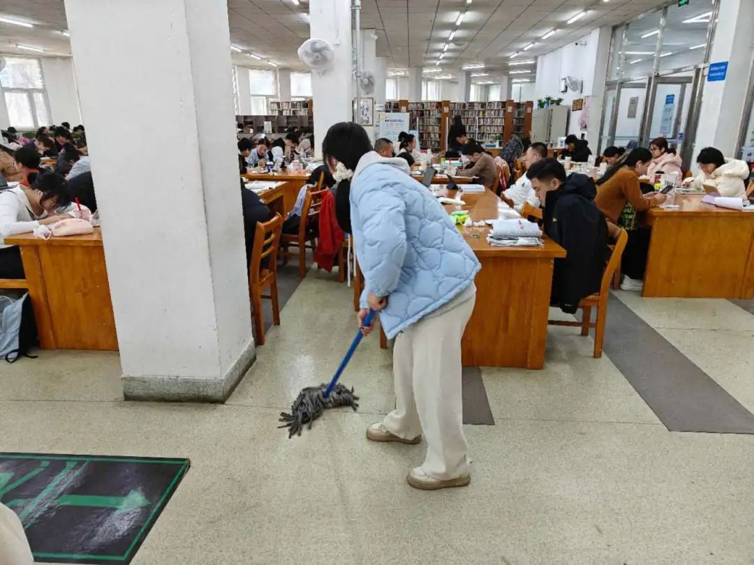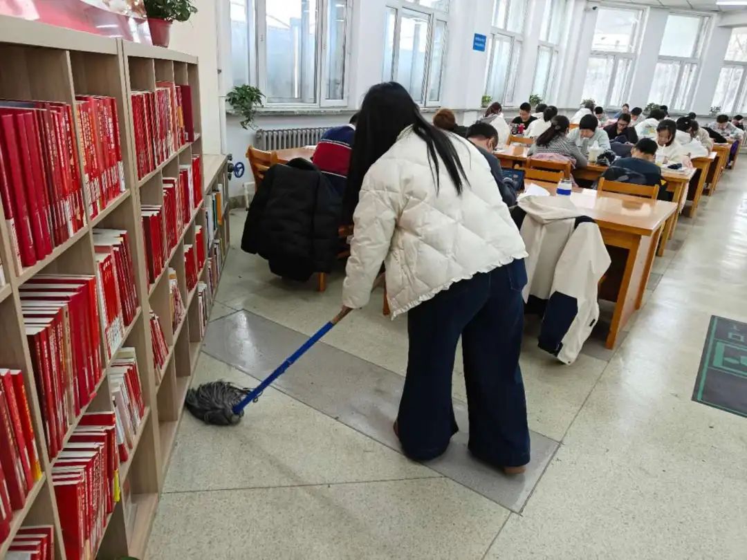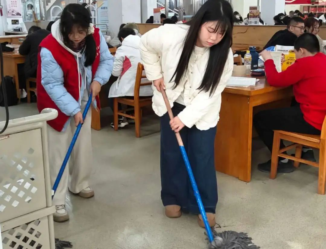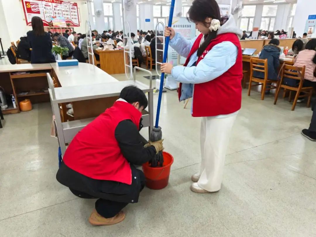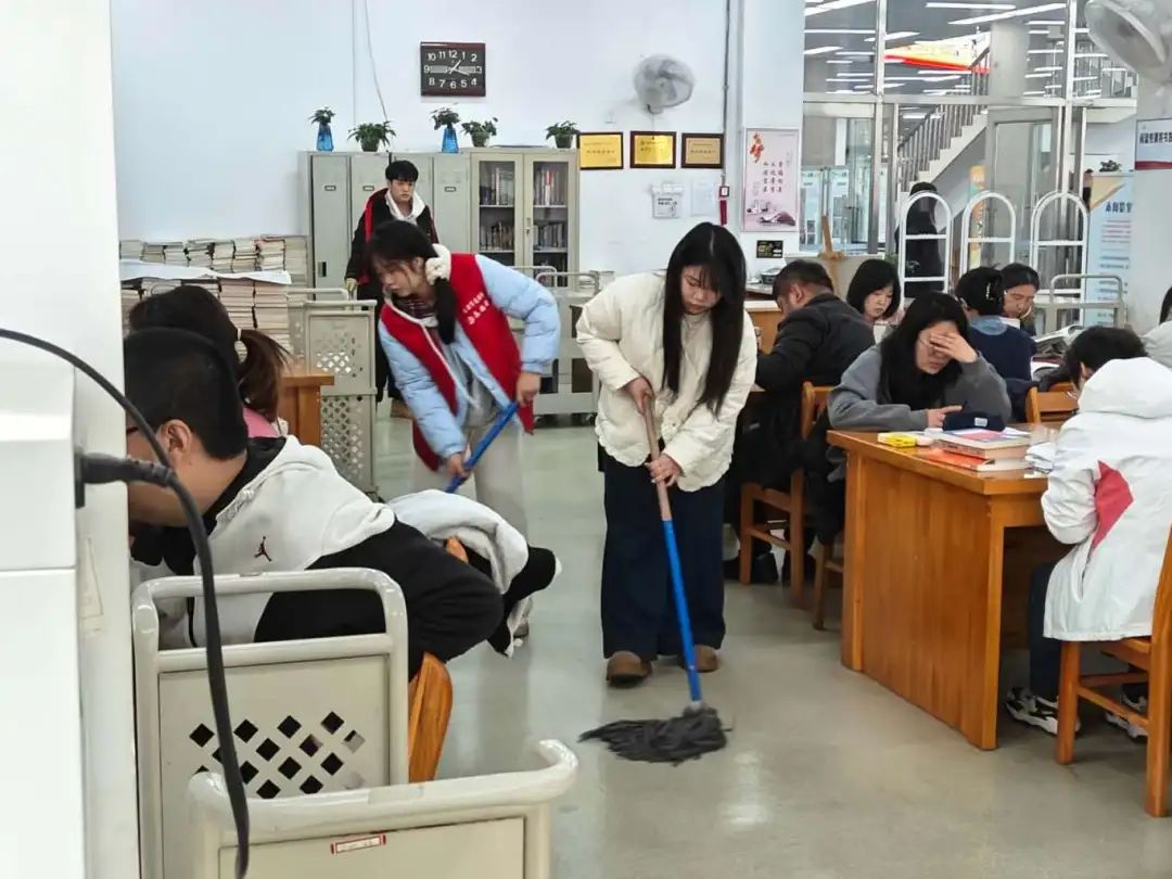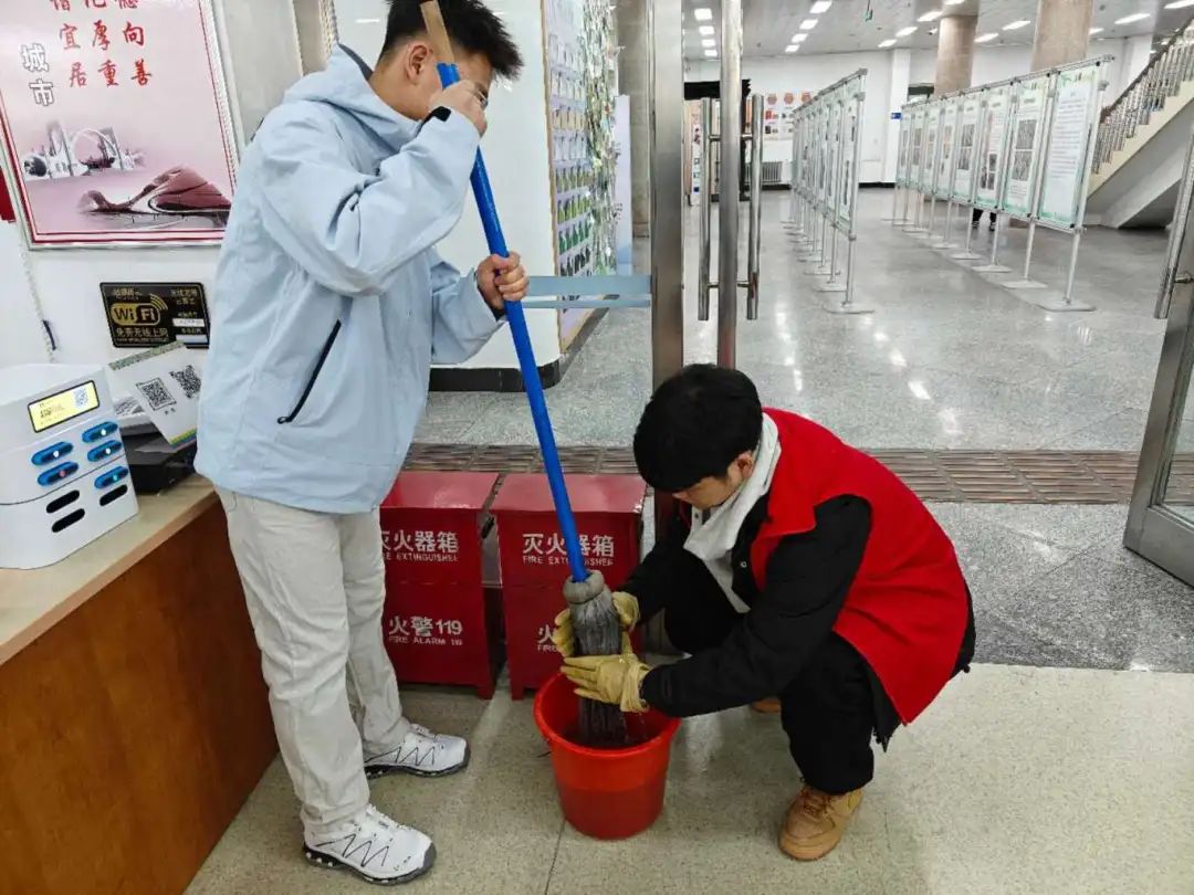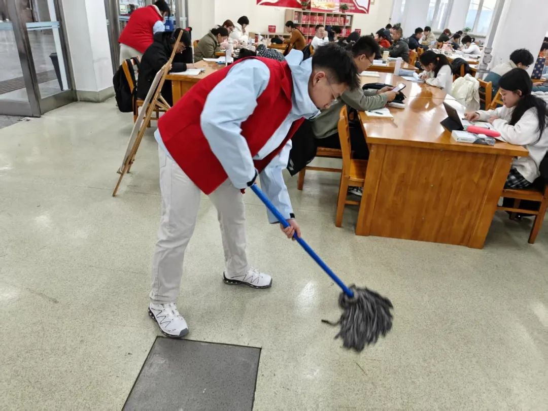 志愿服务期间,在管理员的带领下,志愿者们迅速投入到各自的岗位中,他们擦拭窗台,整理图书,清理地面。清理过程中,志愿者们展现出了高度的责任感和团队合作精神。他们认真细致地完成每一项任务,不仅为读者提供了便利,也为图书馆营造了一个更加舒适、整洁的阅读环境。