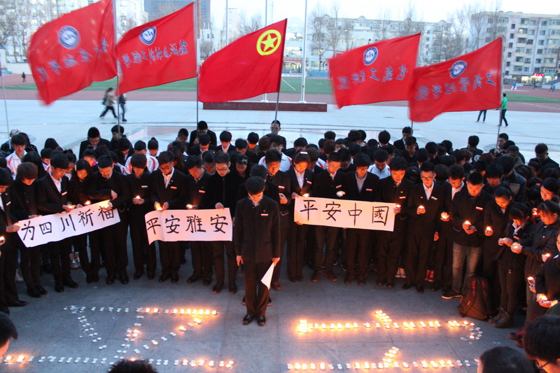 4月20日8时2分,在四川省雅安市芦山县(北纬30.3度,东经103.0度)发生7.0级地震。灾情一经传出,牵动了龙职学子们的心。4月20日晚,437ccm必赢国际官方网站在校园里举行了祈福活动,为雅安地震灾区同胞祈福,为地震中死难者默哀。活动分为介绍灾区情况、同学发表倡议、集体祝祷默哀三部分。