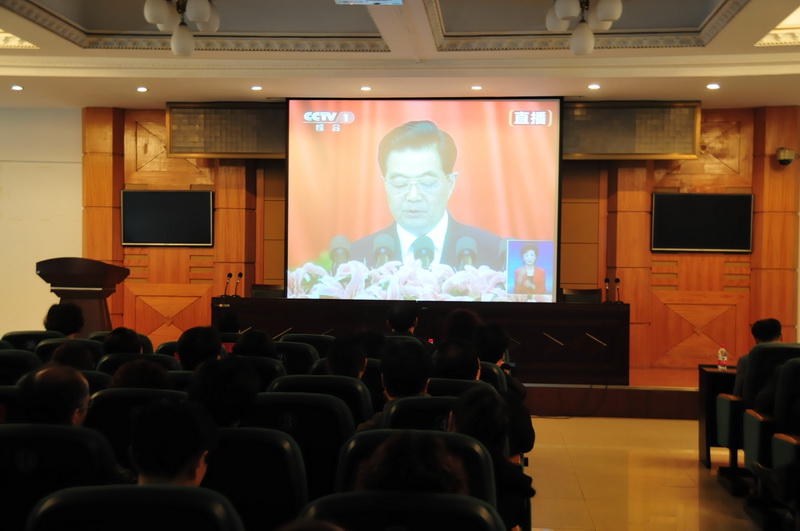 11月8日上午9时,中国共产党第十八次全国代表大会在人民大会堂隆重召开。胡锦涛、江泽民、吴邦国、温家宝、贾庆林、李长春、习近平、李克强、贺国强、周永康等出席大会,吴邦国主持大会。中共中央总书记胡锦涛向大会作了题为《坚定不移沿着中国特色社会主义道路前进 为全面建成小康社会而奋斗》的报告。为了使全院师生能够及时了解大会盛况,学院党委研究决定组织部分师生代表在报告厅收看中国共产党第十八次全国代表大会开幕式,学院领导、各部门负责人及部分师生代表参加,各二级学院也通过多种形式组织本部门教职工及学生收听收看了本次盛会。
