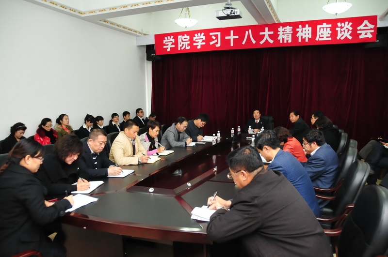 下午,在党委会议室,学院召开了学习党的十八大精神座谈会。学院党委书记冯玉龙,院长赵继会,副院长李贵林、郑福贵,纪委书记周莲香,437ccm必赢国际官方网站副院长王明海和与会的干部教师学生代表共同围绕大会报告畅谈了体会和感受,拉开了我院学习贯彻十八大报告精神系列活动的序幕。冯玉龙书记主持座谈会。