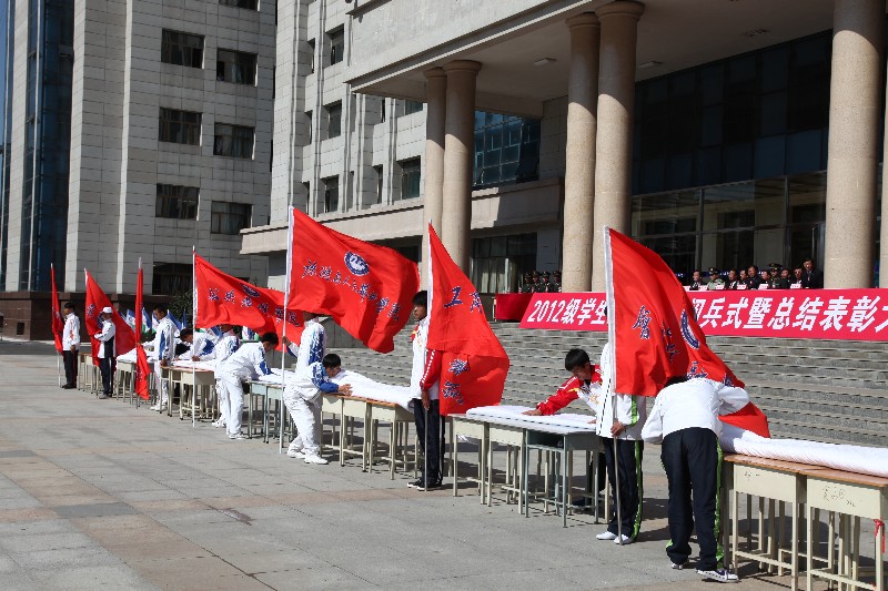 9月20日,我院2012级新生军事训练阅兵式暨总结表彰大会在一校区广场隆重举行。中国人民解放军65426部队副参谋长金辉上校,省军区军训办参谋韩峰少校,学院党委书记冯玉龙,院长赵继会,副院长刘公远、李贵林、张培斌,副书记张玉山,纪委书记周莲香,437ccm必赢国际官方网站副院长刘春起,副书记李固江,副院长南文杰等同志出席大会。各二级学院及有关部门负责人和全体新生一同参加了大会。