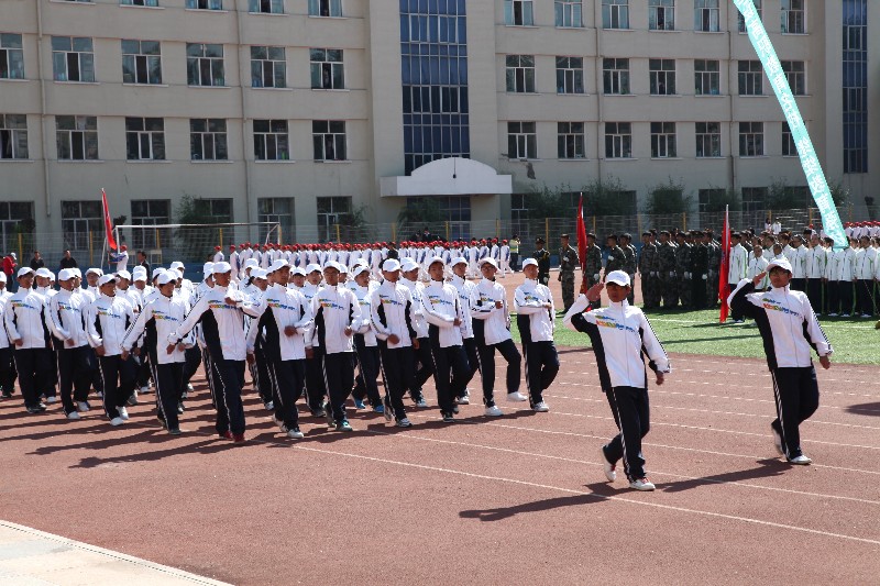 阅兵仪式在雄壮的进行曲声中拉开了序幕。党委副书记张玉山在阅兵总指挥贾思坤的陪同下,检阅了42支方队,向参训学生表示亲切问候,并向全体教官致以崇高的敬意。随后开始盛大而精彩的分列式。军训团各营学生方阵英姿飒爽、朝气蓬勃、步伐雄健、动作规范、口号响亮,同学们以高昂的斗志和良好的精神风貌依次整齐地通过主席台,接受领导检阅。随后,工商管理学院女子拳术方队和公共基础学院男子拳术方队分别带来了精彩的拳术表演,各二级学院选派优秀学生进行了整理内务表演。电气工程学院陈曦同学作为新生代表作了发言,表达了热爱祖国、保卫祖国、报效祖国的坚强决心,表示要尽快适应大学生活,努力学习,尽快成长,早日成为共和国合格的建设者和接班人。