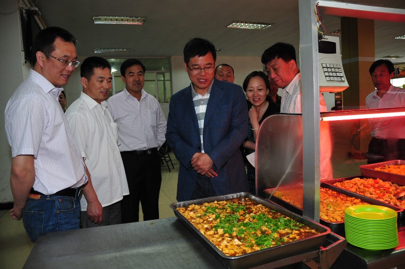 为了进一步加强学院食品卫生安全工作,确保全院师生饮食安全,近日,副院长郑福贵带领有关部门负责人对饮食中心食品安全卫生工作进行了全面检查。着重对饮食中心环境卫生,原材料的购入、清洗、销售过程中的卫生管理,餐具的回收消毒以及剩菜、废油的处理等细节进行了了解和检查,并与就餐学生亲切交流,了解饭菜质量价格和满意度等情况。