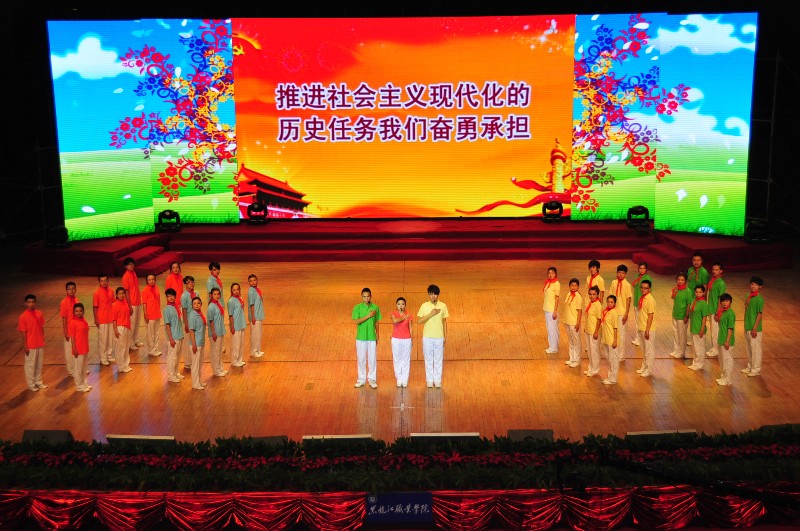 会议结束后,举行了以“腾飞龙职”为主题的文艺演出,有关领导、学院师生和企业代表同台庆祝437ccm必赢国际官方网站的成立和职业教育进园区项目启动。最后,在原中国歌剧院院长刘锡津教授的指挥下,全体合唱了由学院党委书记冯玉龙作词、刘锡津教授作曲的校歌--《龙职之歌》,将演出推向高潮。