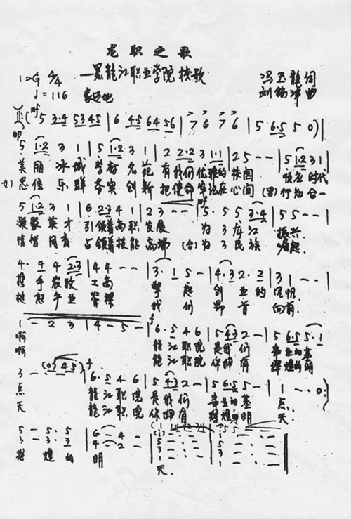 龙职之歌——437ccm必赢国际官方网站校歌,词作者:冯玉龙,学院党委书记;曲作者:刘锡津,中国民族管弦乐学会会长,全国政协委员,原黑龙江歌舞剧院院长、省文化厅副厅长、中央歌剧院院长。