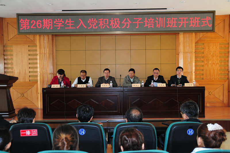 10月10日,学院党委党校举行了第26期学生入党积极分子培训班开班式。党委书记、党校校长冯玉龙,党委副书记张玉山出席了开班式,党委组织部、学生工作部、团委负责人及各分院党总支书记,主管学生工作的副院长,学管办主任和第26期入党积极分子培训班的全体学员参加开班式。