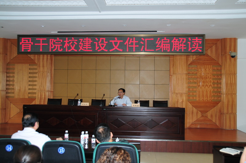 为加深学院广大教职工对高职教育政策法规及相关精神的理解,更好地落实学院国家骨干院校建设的各项工作, 6月10日,院长助理王明海教授为全院教师作了国家骨干高职院校有关文件精神的辅导讲座。讲座由副院长刘公远主持,全院教师及部分科级以上干部共240人参加。