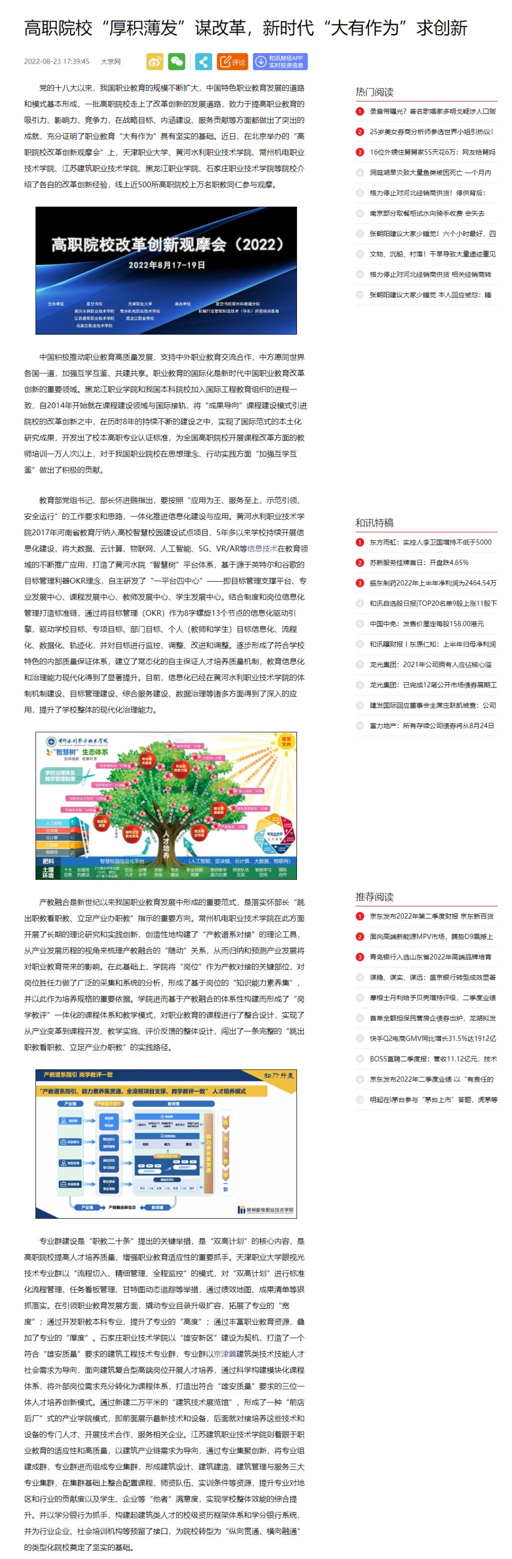 【和讯新闻】高职院校“厚积薄发”谋改革,新时代“大有作为”求创新
