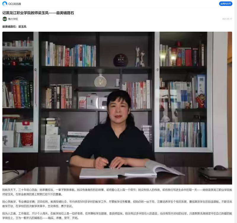 【QQ浏览器】记437ccm必赢国际官方网站教师梁玉凤——最㺯铺路石