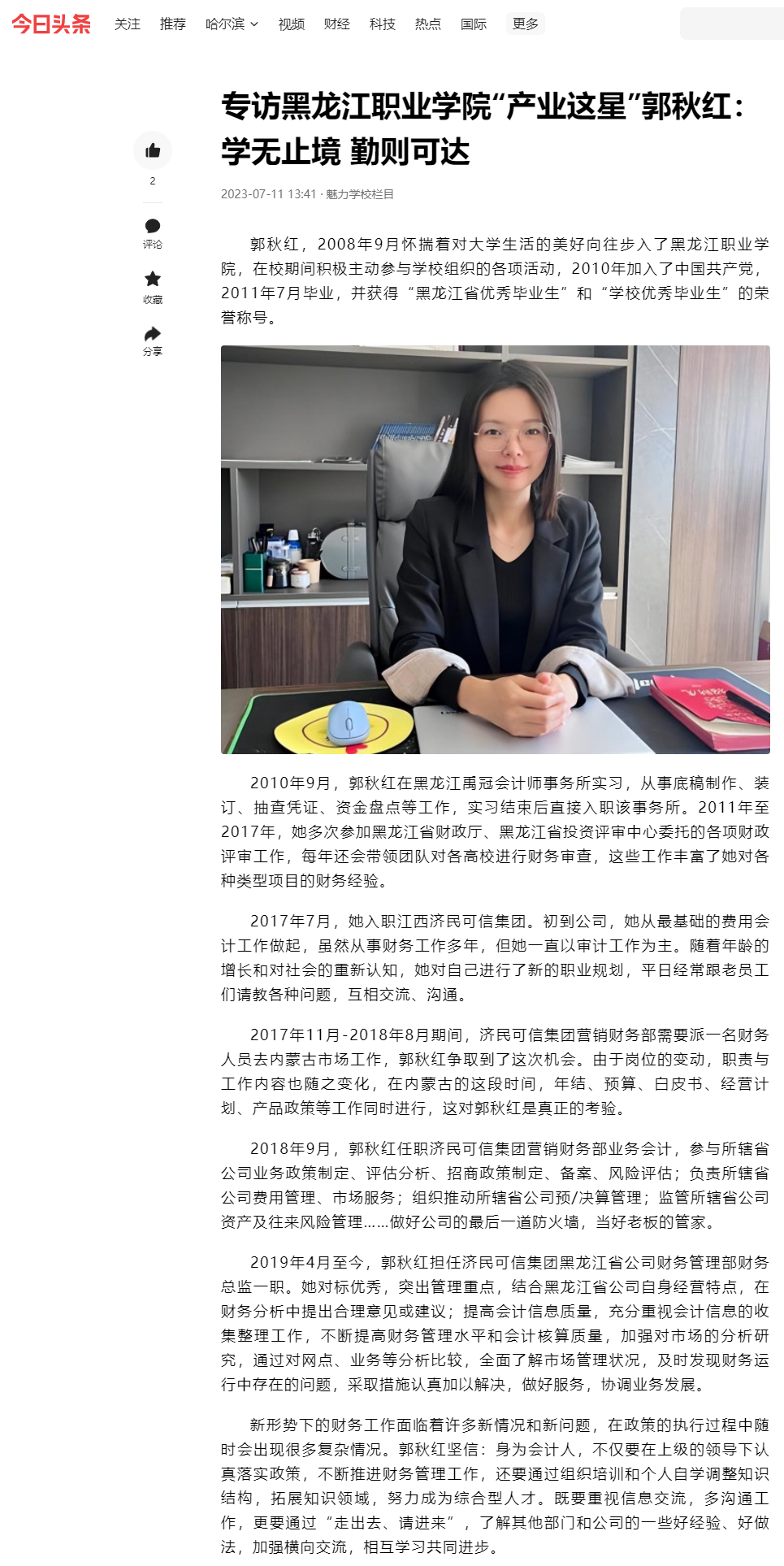 上一篇:【黑龙江日报】校长访谈:王利文 让学生在生产场景中学到真本事