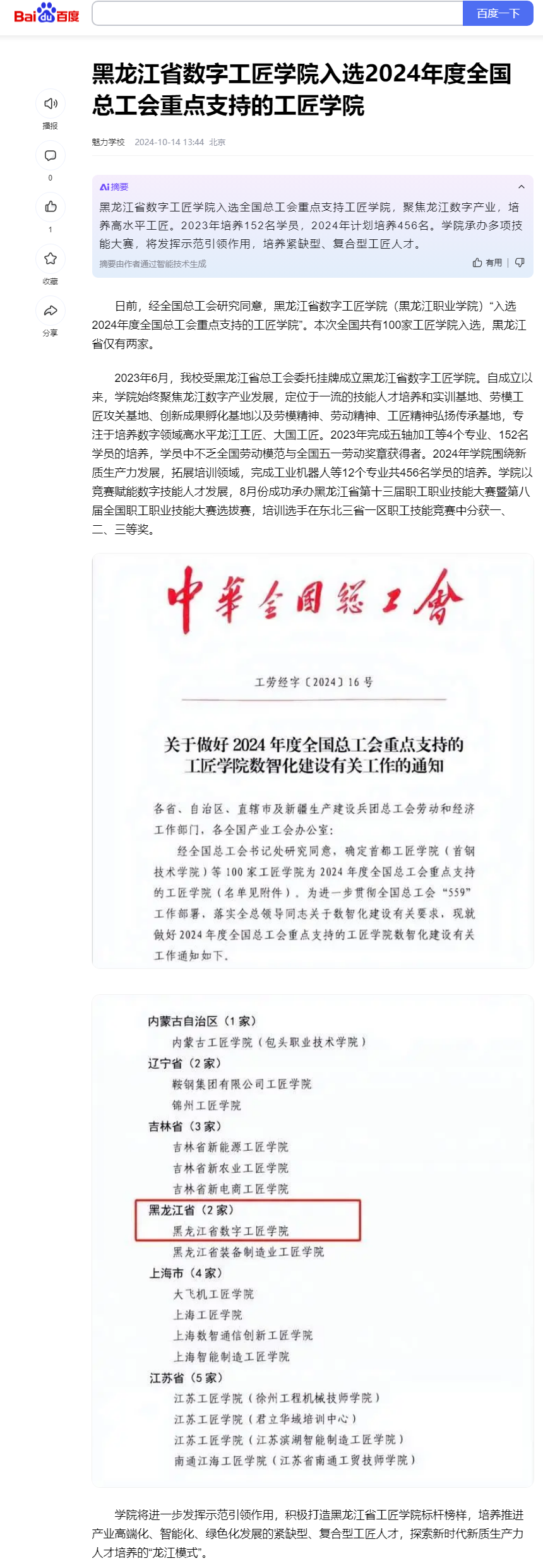 下一篇:【一点资讯】黑龙江省数字工匠学院入选2024年度全国总工会重点支持的工匠学院