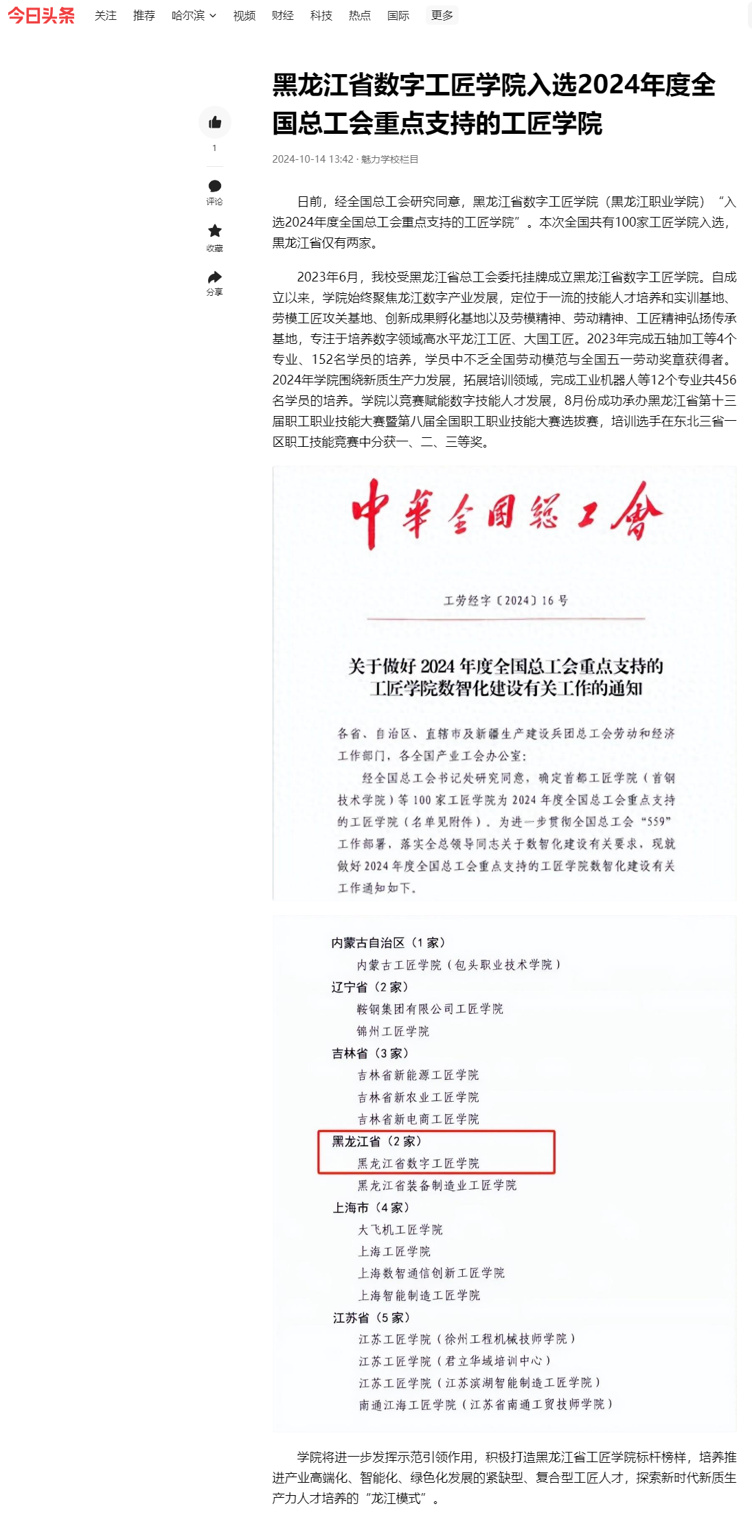 下一篇:【百度新闻】黑龙江省数字工匠学院入选2024年度全国总工会重点支持的工匠学院