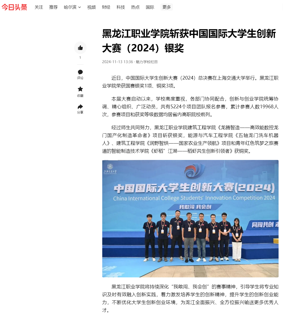 上一篇:【一点资讯】437ccm必赢国际官方网站斩获中国国际大学生创新大赛(2024)银奖
