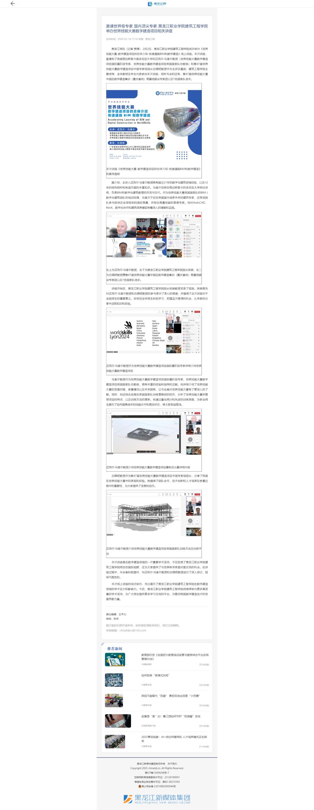 【黑龙江网】邀请世界级专家 国内顶尖专家 437ccm必赢国际官方网站建筑工程学院举办世界技能大赛数字建造项目相关讲座
