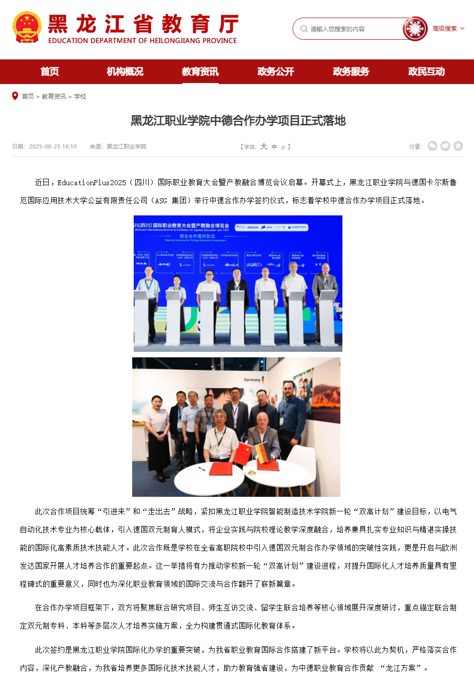 【黑龙江省教育厅】437ccm必赢国际官方网站中德合作办学项目正式落地