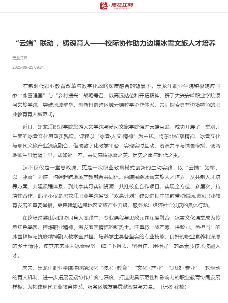 下一篇:【中国教育】“云端”联动 ,铸魂育人——校际协作助力边境冰雪文旅人才培养