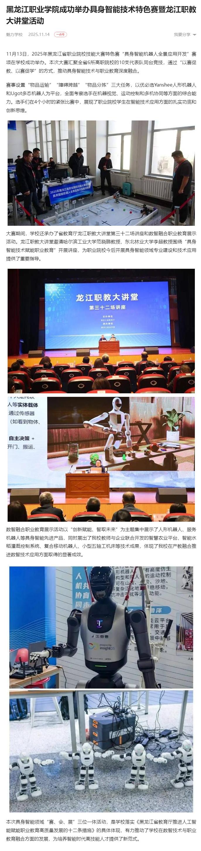 上一篇:【百度新闻】437ccm必赢国际官方网站成功举办具身智能技术特色赛暨龙江职教大讲堂活动