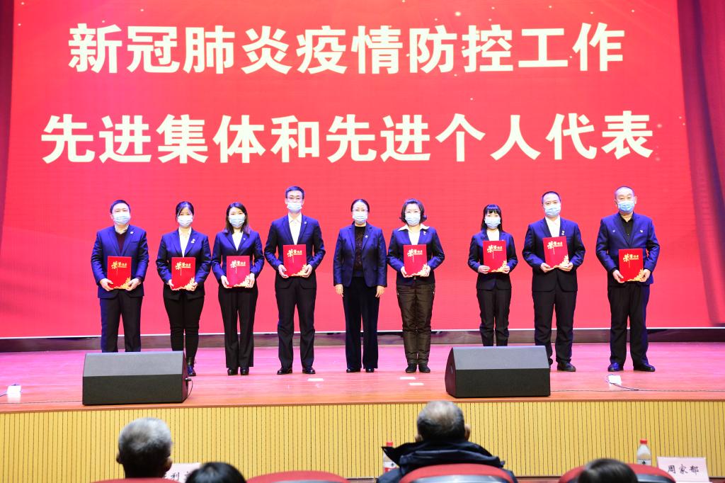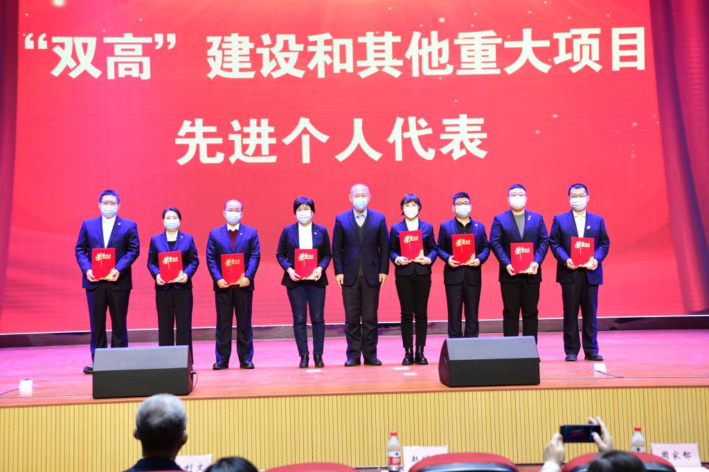 会上,副校长吴艳秋宣读了《关于奖励“双高”建设及其他重大项目先进集体的决定》《关于表彰省“双高”建设和其他重大项目先进个人的决定》和《关于表彰奖励新冠肺炎疫情防控工作先进集体和先进个人的决定》。纪委书记李伟宣读了《关于表彰奖励2021年在国家级、省级技能大赛中获奖师生的决定》和《关于表彰奖励2021年在国家级、省级双创大赛中获奖学生、指导教师的决定》。党委书记赵继会、校长王利文、副校长郑福贵、吴艳秋分别为先进集体和先进个人代表颁发了获奖证书。
