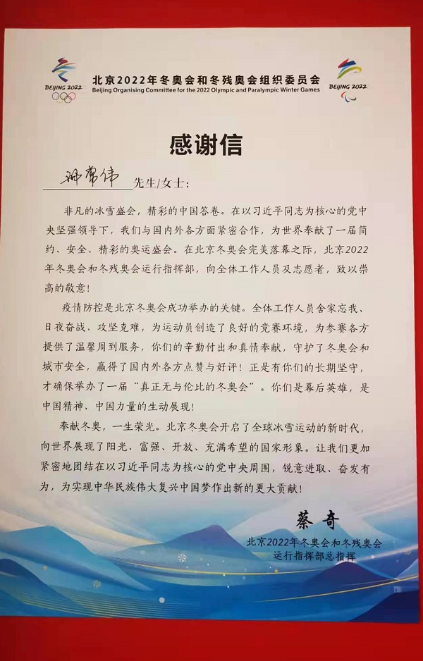 新年伊始,必赢通识教育学院体育教师张巍收到了期盼已久的2022年北京冬奥会组委会邀请函,赴北京担任2022年冬奥会裁判员工作。这是多少体育人的梦想,作为一名体育教师能够亲眼见证2022年北京冬奥会是多么骄傲与自豪。