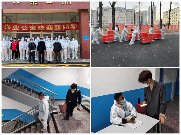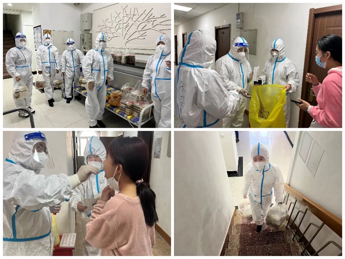 在这次返校的学生中,部分学生被集中隔离,培训公寓学生转运组负责他们的健康监测、心理疏导等工作,每日协助后勤管理处校医院进行核酸检测、辅助学生处送餐组为学生发放三餐和水果……