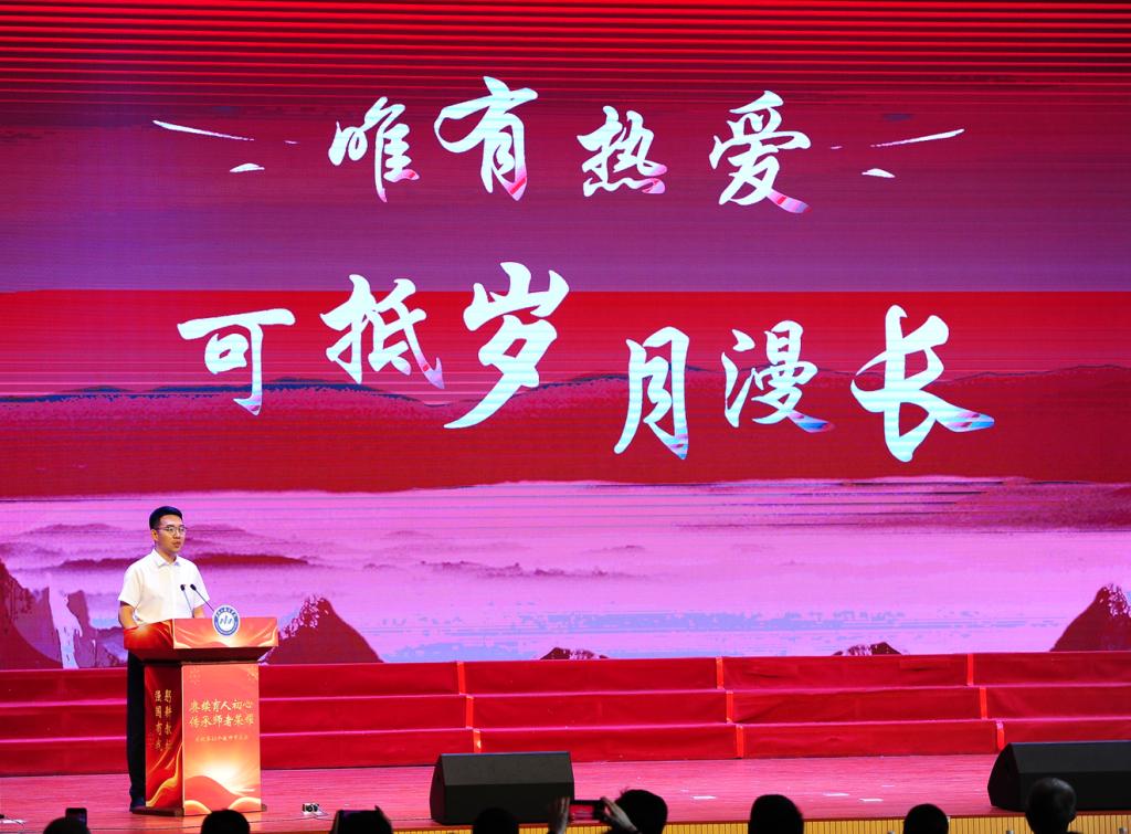 9月10日下午,437ccm必赢国际官方网站在工匠楼学府礼堂召开“赓续育人初心,传承师者荣耀”庆祝第40个教师节大会,大会分为致敬篇、表彰篇和传承篇,师生欢聚一堂,用特有的方式表达对党的教育事业的忠诚与热爱。全体校领导及师生代表参加大会。