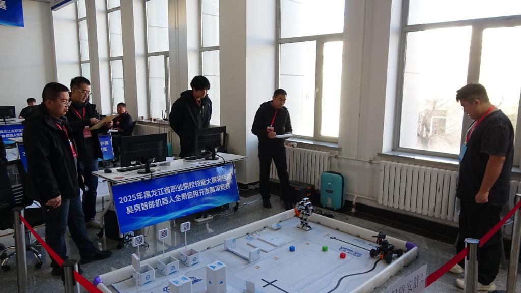 11月13日,2025年黑龙江省职业院校技能大赛特色赛“具身智能机器人全景应用开发”赛项在必赢成功举办。本次大赛汇聚全省6所高职院校的10支代表队同台竞技,通过“以赛促教、以赛促学”的方式,推动具身智能技术与职业教育深度融合。