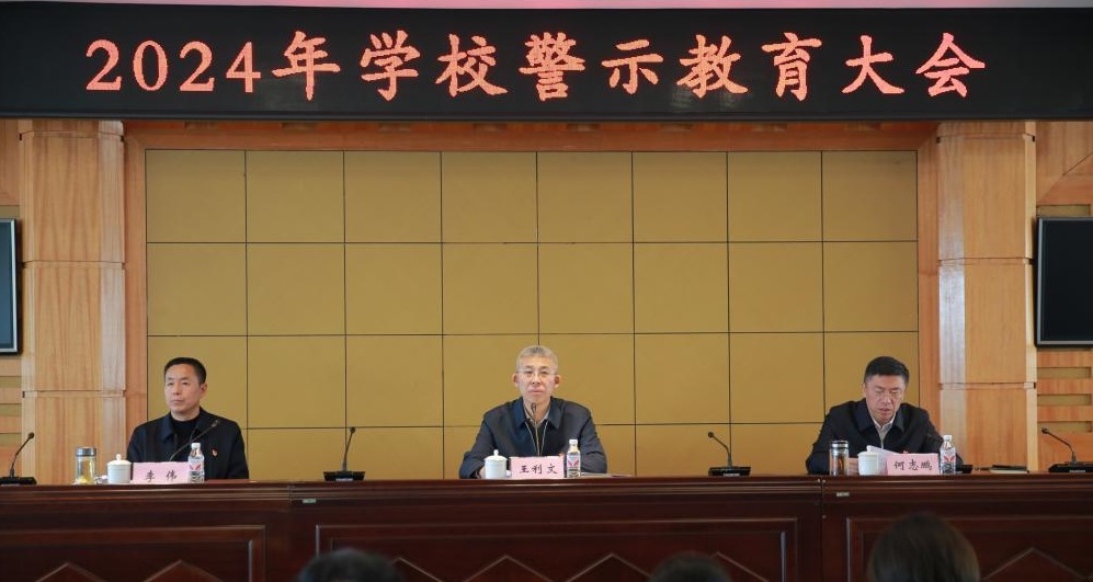为贯彻2024年全省教育系统全面从严治党暨巡视整改工作推进会议精神,落实全面从严治党主体责任和巡视整改任务,推动警示教育常态化,4月9日,学校党委在报告厅召开2024年警示教育大会。学校党委委员、纪委委员、处级干部等参加会议。会议由学校党委副书记、校长王利文主持。