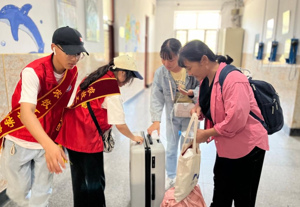 ▲校团委学生志愿者帮助新生搬运行李