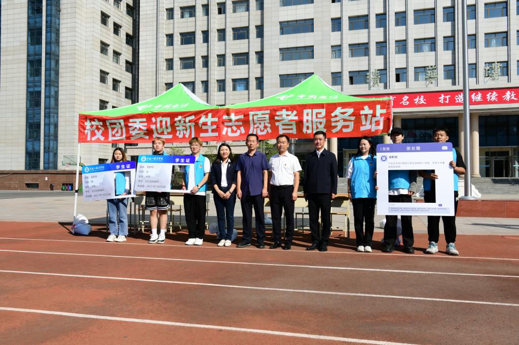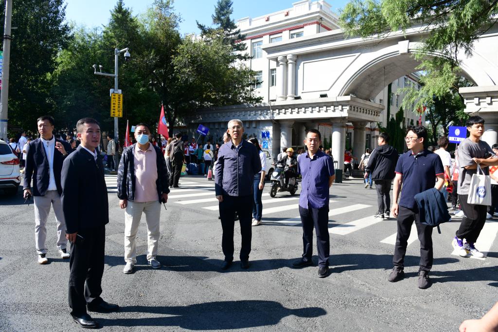 ▲校长王利文、党委副书记周家郁慰问哈站迎新工作人员