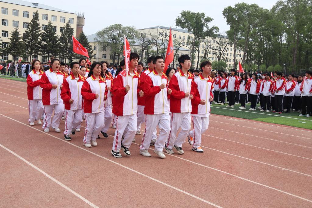 学生工作部副部长于满昌宣读《2023-2024学年度第二学期学生早军操表彰奖励决定》,赵彦生、张晓东、王福胜为获奖集体颁发奖旗。