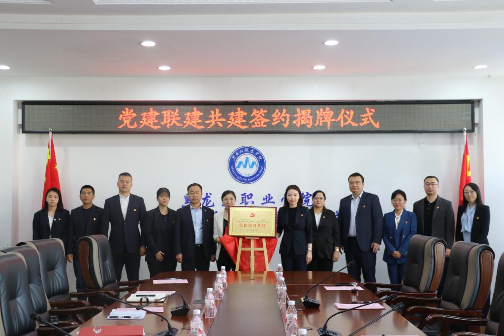 学生工作部党总支书记石倩与张丽丹签订了《党建联建共建协议书》,双方党总支委员共同为党建联建共建进行揭牌。