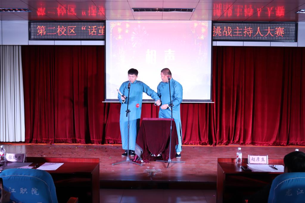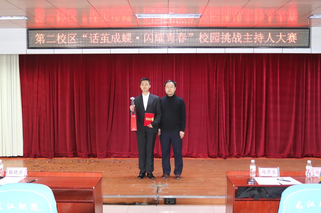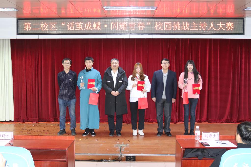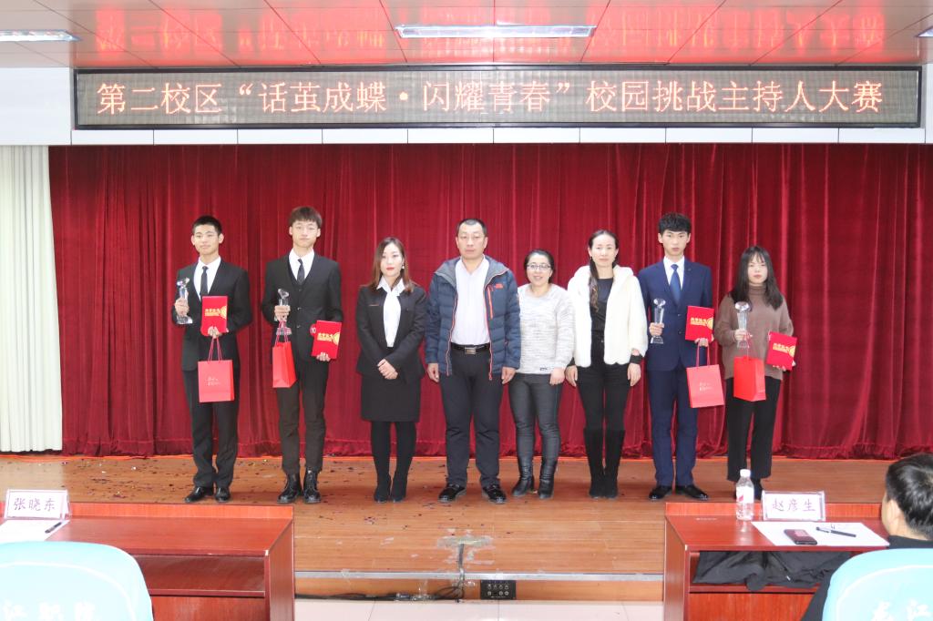 11月27日,由437ccm必赢国际官方网站第二校区学工部主办,校新媒体中心承办的“话茧成蝶,闪耀青春”挑战主持人大赛成功举行。学工部副部长赵彦生、各二级学院学工副院长、团总支书记参加活动,大赛邀请具有专长的教师、犸林文化有限公司代表共计7人组成评委团,与240余名观众共同欣赏了选手们的精彩表现。