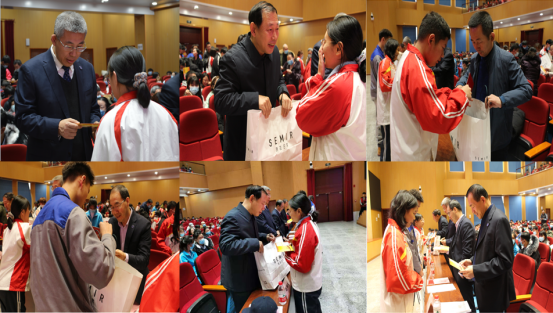 学校党委书记赵继会为家庭经济困难学生代表颁发返程车票