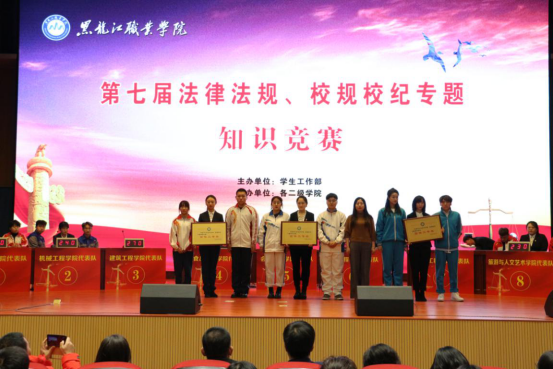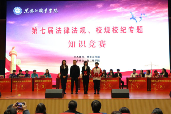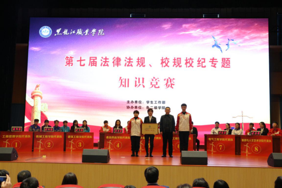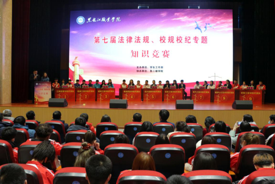 12月16日,第七届“法律法规、校规校纪”专题知识竞赛成功举办。学校党委副书记周家郁,学工部相关人员,二级学院党总支书记、副书记、学管办主任、辅导员和600余名学生参加此次活动。