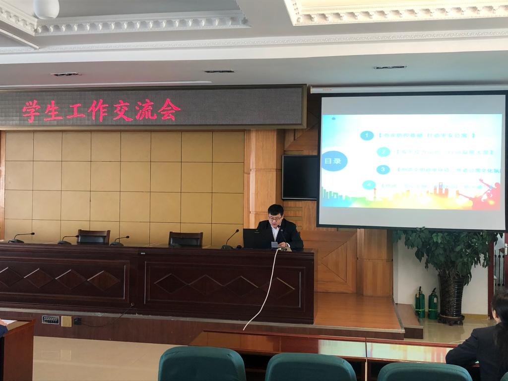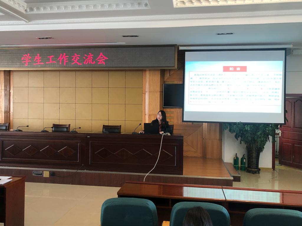 两校区共11名辅导员进行了精彩的工作交流和经验分享。机械工程学院尚天任讲述了对争做“四有好老师”的理解,通过案例分享做好班级管理和加强自身建设方面的心得体会。电气工程学院刘东航分享了开展“赏识教育”心得体会,用“充满人情味、富有生命力”的教育让学生发现并发扬优点和长处。建筑工程学院张苏阐述了了解学生、熟悉学生、服务学生的工作理念,并举例分享了自己在实际工作中的成功做法。工商管理学院李岱泓再现了做好“大姐姐”、扮好“大管家”、演好“领头雁”、当好“工匠人”的一幕幕感人画面。会计金融学院王双琪分享了因材施教、无障碍沟通、狠抓学风建设的成功做法。旅游与人文艺术学院李京结合“对待学生要严爱慈心、对待工作要找准重心、对待问题要多多留心”的“三心”角度分享自己的做法和体会。农牧工程学院宓宪伟分享了通过强化班级教育管理,带领学生在“创新创业”工作上取得的成绩心得体会。食品药品学院蒋雨晴分享了参加全省骨干辅导员培训的心得体会。公寓辅导员卢丙洋和史召楠分别从“高校辅导员素质能力大赛”和“学生公寓的管理服务”这两个角度分享了参赛体会、取得的成绩和身边发生的故事。