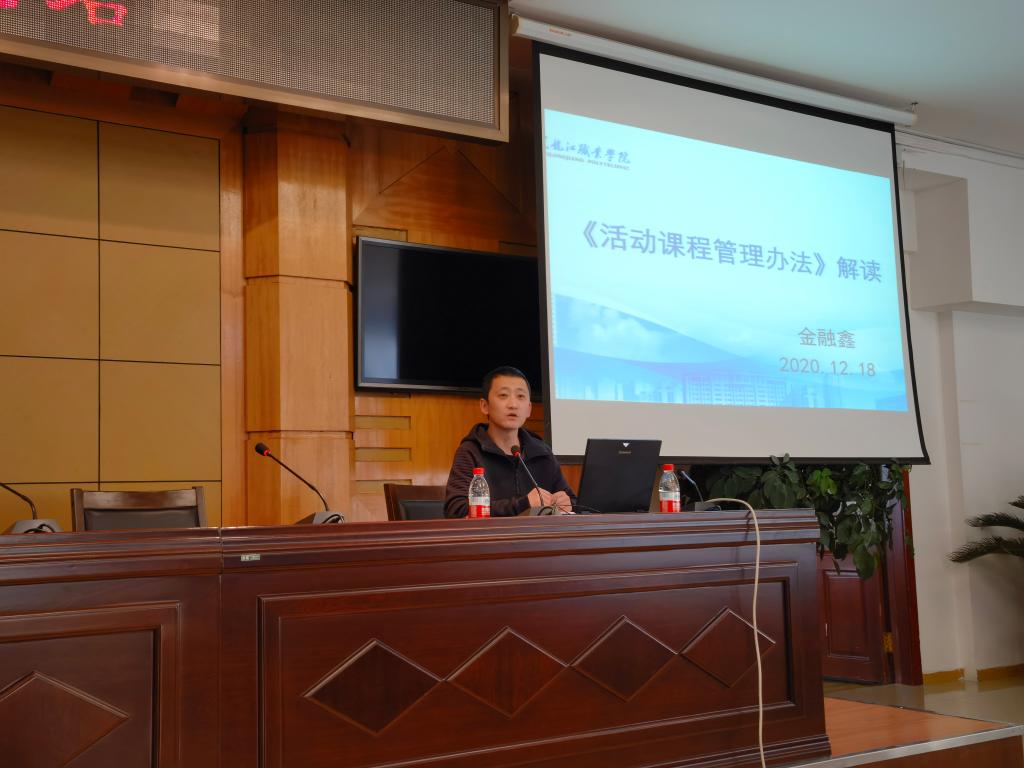 在培训会议上,非正式课程管理科金融鑫对学校的《活动课程管理办法》进行了深入的解读,徐春艳对如何使用《活动地图、大纲汇编》、如何在学工平台录入活动课成绩进行了详细的讲解。