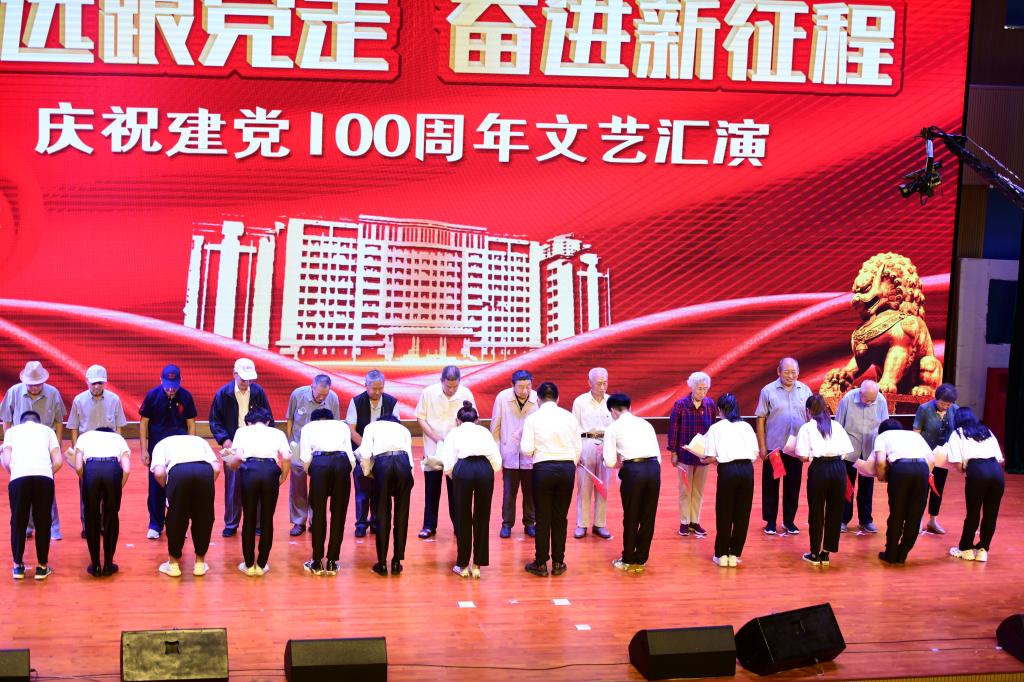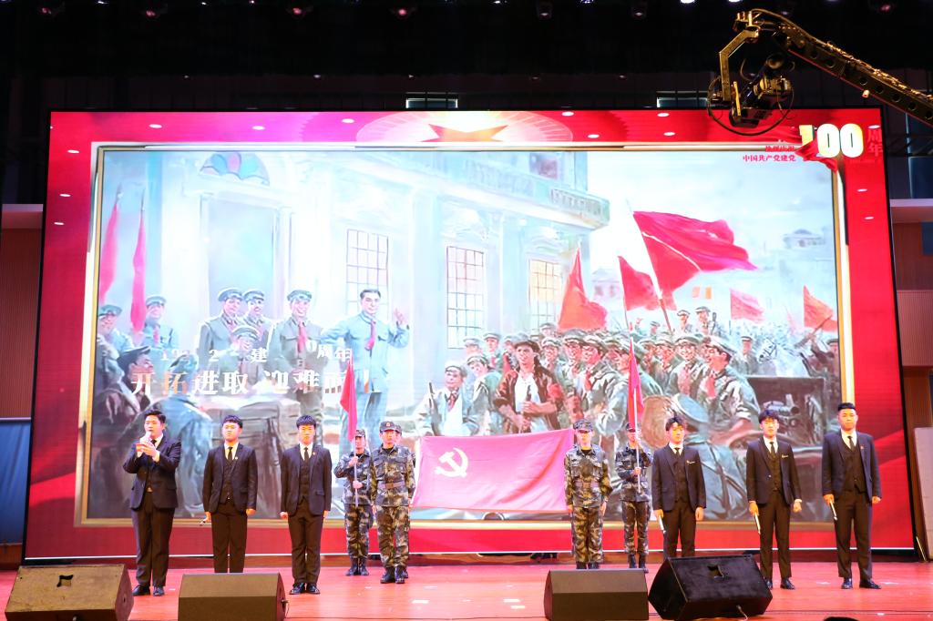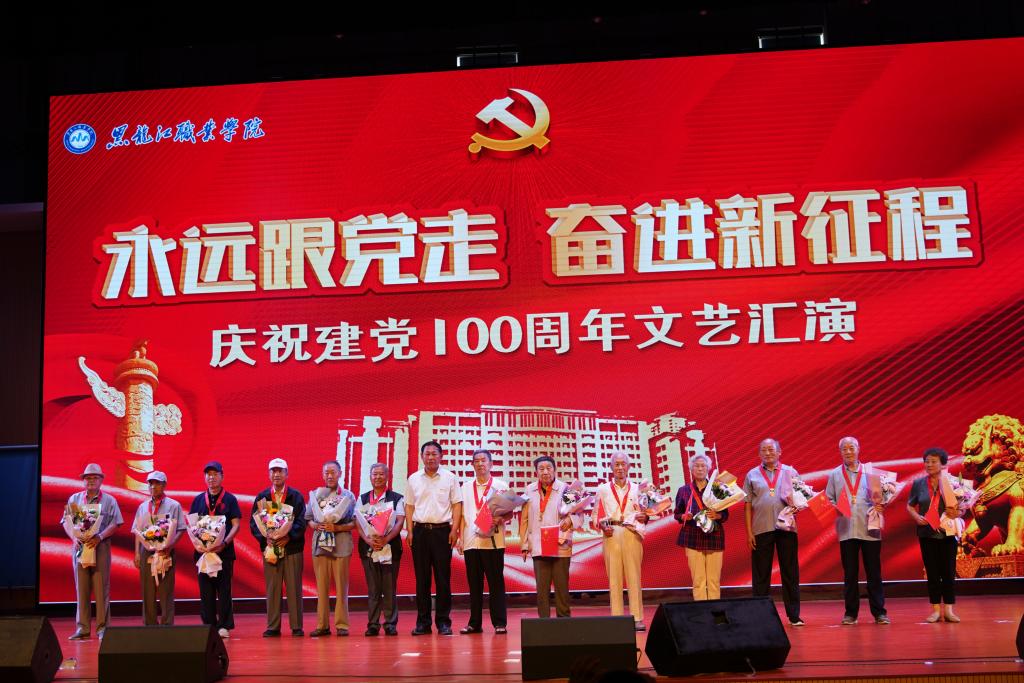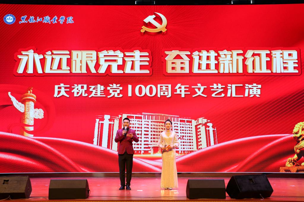 百年征程波澜壮阔,百年初心历久弥坚。为隆重庆祝中国共产党成立100周年,回望百年历史,追忆奋斗历程中的革命先辈事迹,6月25日,学校庆祝中国共产党成立100周年“永远跟党走·奋进新征程”师生文艺汇演顺利举行。学校党委书记赵继会,副校长李贵林,党委委员、副校长郑福贵,党委委员、副校长王明海,党委委员、副校长吴艳秋出席活动,学校机关党委各党支部书记,各党总支、直属党支部书记,各部门教职工代表和各二级学院学生代表等近400人在现场观看演出,第二校区全体师生通过点对点同步视频通过大屏幕观看了本次汇演的直播盛况,校团委官方抖音号“龙职青年”同步全程进行了线上直播,线上线下一万余名师生共同感悟百年奋斗历程,传承党的光荣传统,在新征程中激发奋进力量。