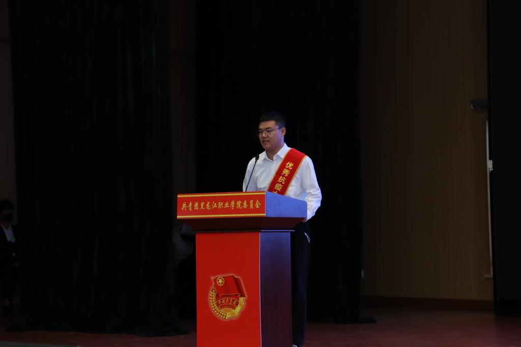 宣讲会上,来自机械工程学院赵延旭、马荣振,电气工程学院于佳琦、李君鹏,建筑工程学院吴宪、闵睿,工商管理学院刘聿涛、杨雨菲,会计金融学院许晶莹、付斌,旅游与人文艺术学院于闯、孟凡超12名优秀抗疫大学生志愿者分享了自己奋战在家乡新冠肺炎疫情防控“第一道防线”志愿服务工作的亲身经历和感人事迹,他们主动请战,自愿加入志愿者服务工作,在街道、在社区、在村口……,他们每日早起晚归在值班地点站岗,监督每日往返车辆群众百姓的健康码和体温情况,登记人员来往信息,挨家挨户分发抗疫急救物资和抗疫宣传手册……他们用无畏书写着无悔,用奉献撰写着诺言,用实际行动践行着“自强有为,兴业报国”的龙职精神,彰显着龙职青年的蓬勃力量,展现了“龙职人”责任与担当。