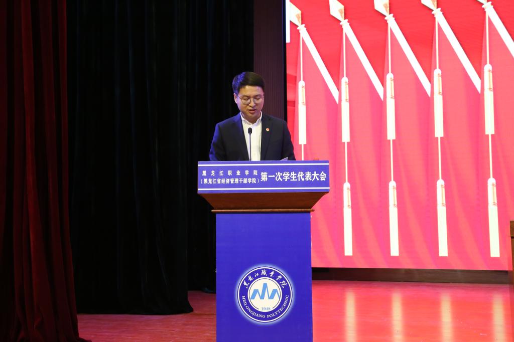邹春雷代表校团委对学校第一次学生代表大会隆重召开表示祝贺。他希望各级学生组织及各位代表在学校党委的领导下以此次学代会为契机,自觉把个人梦想融入实现中国梦的伟大实践,团结引导必赢青年学生勤奋学习、刻苦钻研,努力培育优良的学风、校风,用实际行动去践行“自强有为、兴业报国”的“龙职”精神,去实现个人成才梦、“龙职”名校强校梦、龙江振兴梦、国家富强梦。