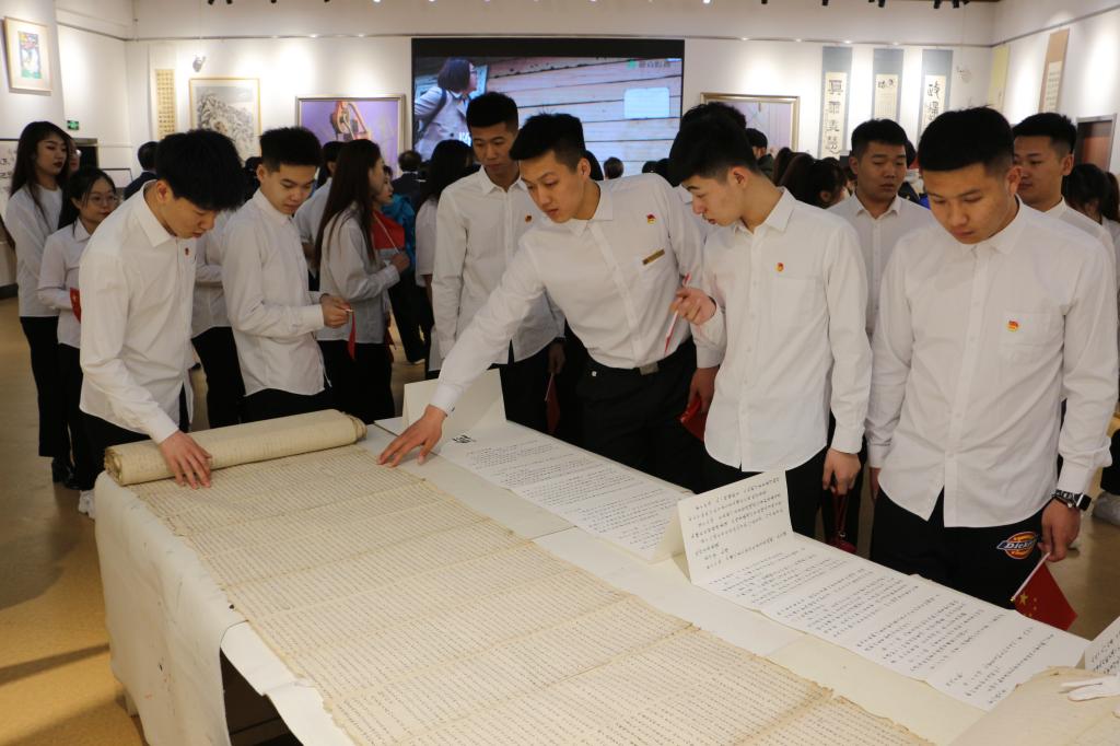 在中国共产党成立100周年之际,为深入学习习近平总书记在党史学习教育动员大会上的重要讲话精神,扎实推动党史学习教育走深走实,培养学生的爱国情怀,5月7日,校团委组织专职团干部和校院两级主要学生干部近50人赴哈尔滨学院,开展“学党史·强信念·跟党走”党史学习教育“黑龙江四大精神”文创展览馆参观活动。