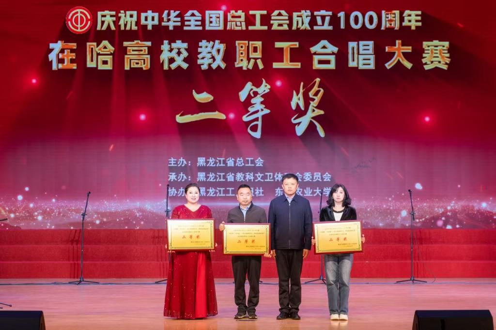 喜报:学校教师合唱团荣获庆祝中华全国总工会成立100周年在哈高校教职工合唱大赛二等奖