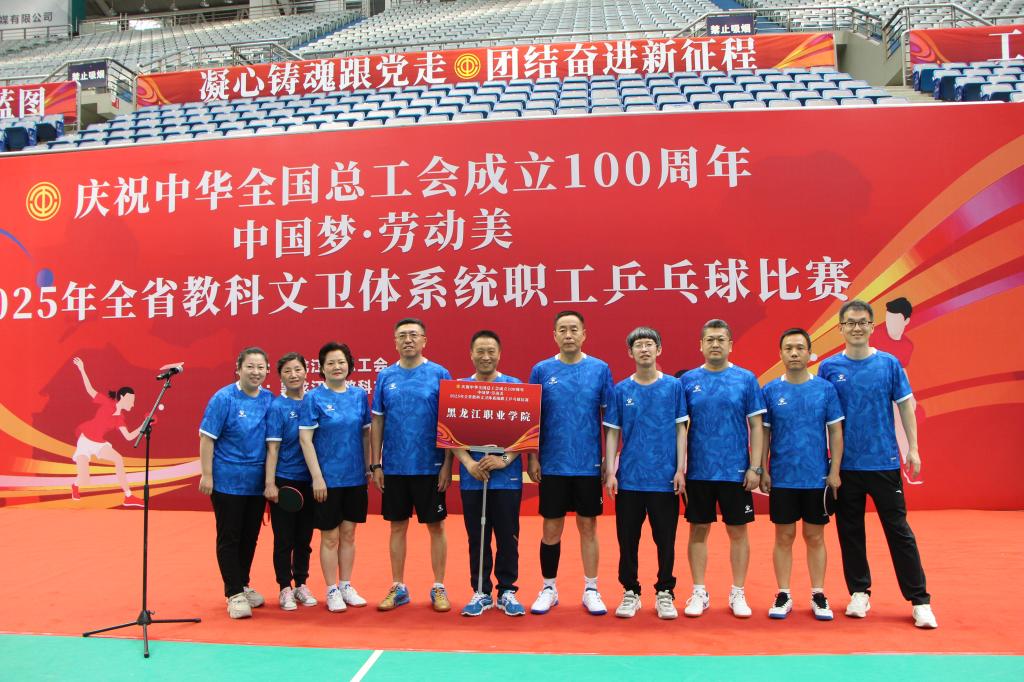 近期,由省总工会主办、省教科文卫体工会承办的庆祝中华全国总工会成立100周年“中国梦·劳动美”2025年省教科文卫体系统职工乒乓球比赛在哈尔滨会展中心成功举办。副校长何志鹏带队参加比赛并荣获“体育道德风尚奖”,以实际行动诠释劳动精神,献礼全国总工会百年光辉征程。