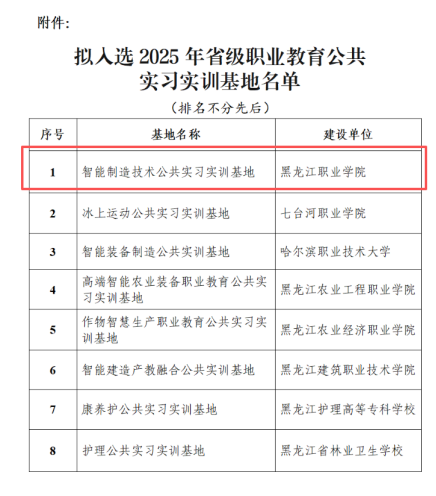 必赢智能制造技术公共实习实训基地成功入选2025年省级职业教育公共实习实训基地,标志着学校在产教融合、技能人才培养领域的成果获省级权威认可。