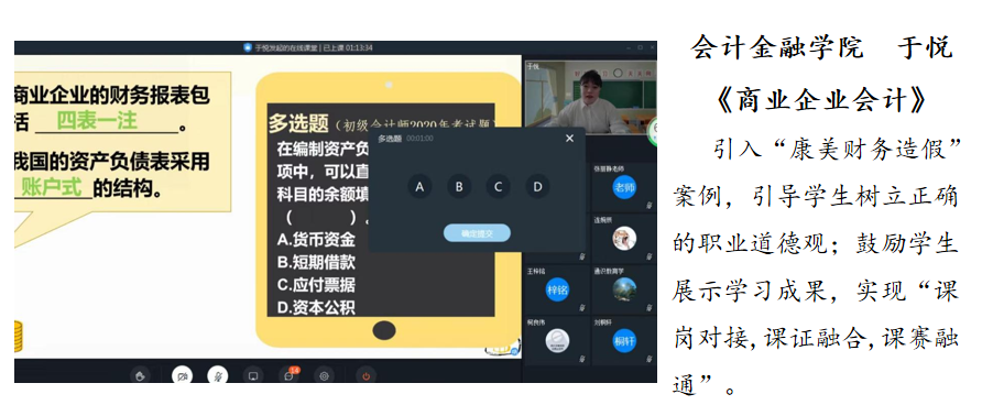 为进一步提高线上教学质量,持续推进“成果导向3.0”教学改革,5月23日至5月27日,学校组织开展了“线上教学开放课”活动。由各二级学院选拔推荐的11名教师精心选择教学平台和资源,优化教学设计,合理设置教学环节,推出各具特色、异彩纷呈的在线开放课。学校专兼职教师、校院两级督导、二级学院领导及教学质量监控与评估中心人员450余人走进教学云课堂,认真观摩学习,积极研讨、交流、评价,活动取得良好效果。