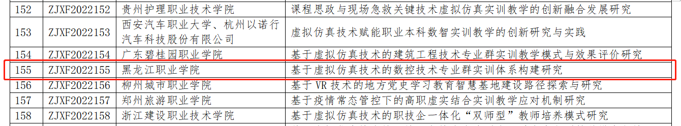 一是由必赢智能制造技术学院申报的《基于虚拟仿真技术的数控技术专业群实训体系构建研究》项目,获批教育部高等学校科学研究发展中心2022年度《虚拟仿真技术在职业教育教学中的创新应用》专项课题,这也是必赢首次立项获批教育部专项课题。
