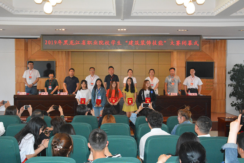 建筑工程学院建筑装饰专业团队带头人林泉主持大赛闭幕式,建筑工程学院院长范海波、副院长张皓、省教育厅大赛组委会巡视员、哈尔滨华天雨润装饰公司总经理出席仪式。
