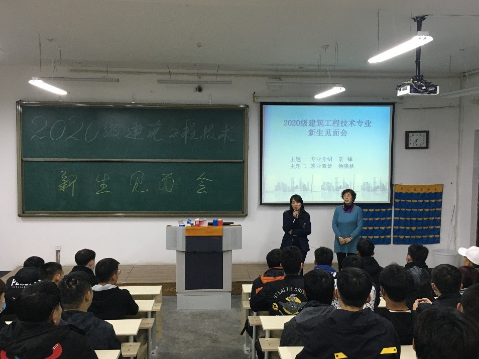 建筑工程技术专业邀请黑龙江省龙泉建筑工程监理有限公司经理杨晓秋做专业介绍,杨晓秋就学生最关心的就业前景、行业发展方向、专业能力要求、企业用人标准做详细介绍。