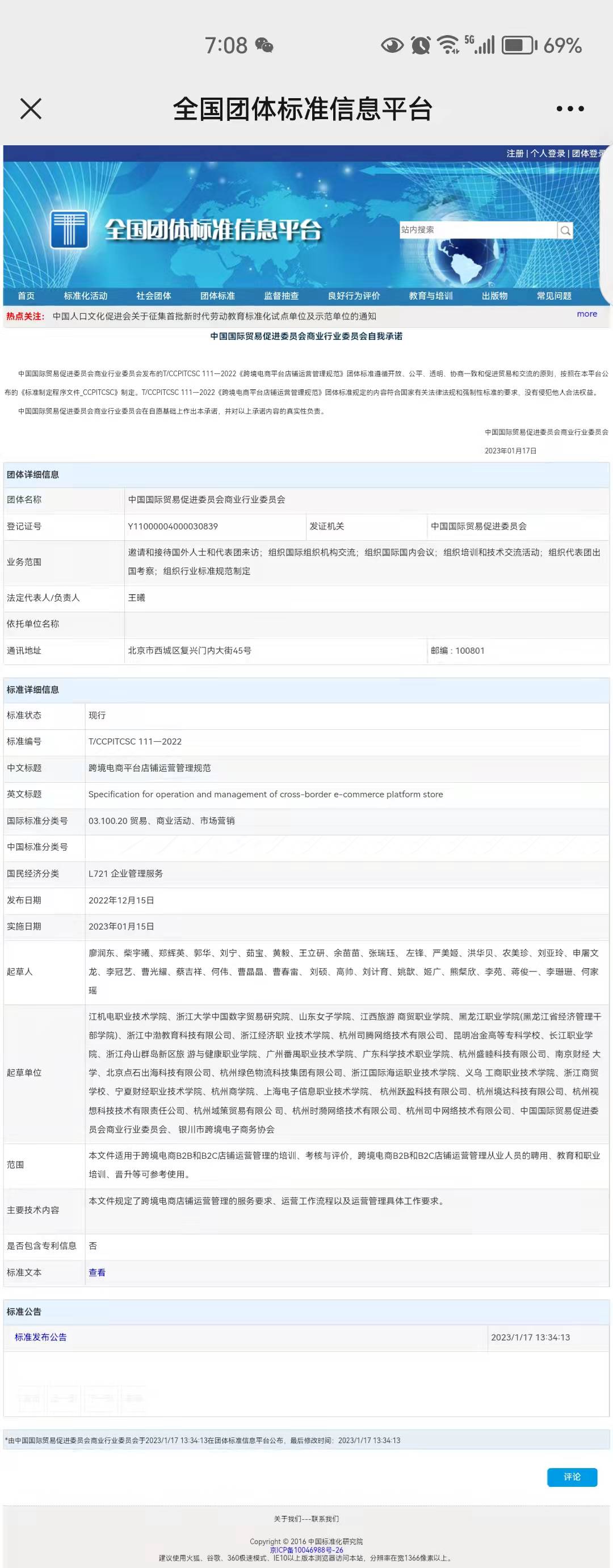 1月17日,必赢参与起草的“跨境电商新业态新模式运营管理规范”系列三项国家团体标准《跨境电商独立站运营管理规范》(T/CCPITCSC 109—2022)、《跨境电商海外仓运营管理规范》(T/CCPITCSC 110—2022)、《跨境电商平台店铺运营管理规范》(T/CCPITCSC 111—2022)在全国团体标准信息平台(http://www.ttbz.org.cn/)正式发布。本次发布的国家团体标准项目由浙江大学中国数字贸易研究院牵头制定,中国国际贸易促进委员会商业行业委员会立项管理。