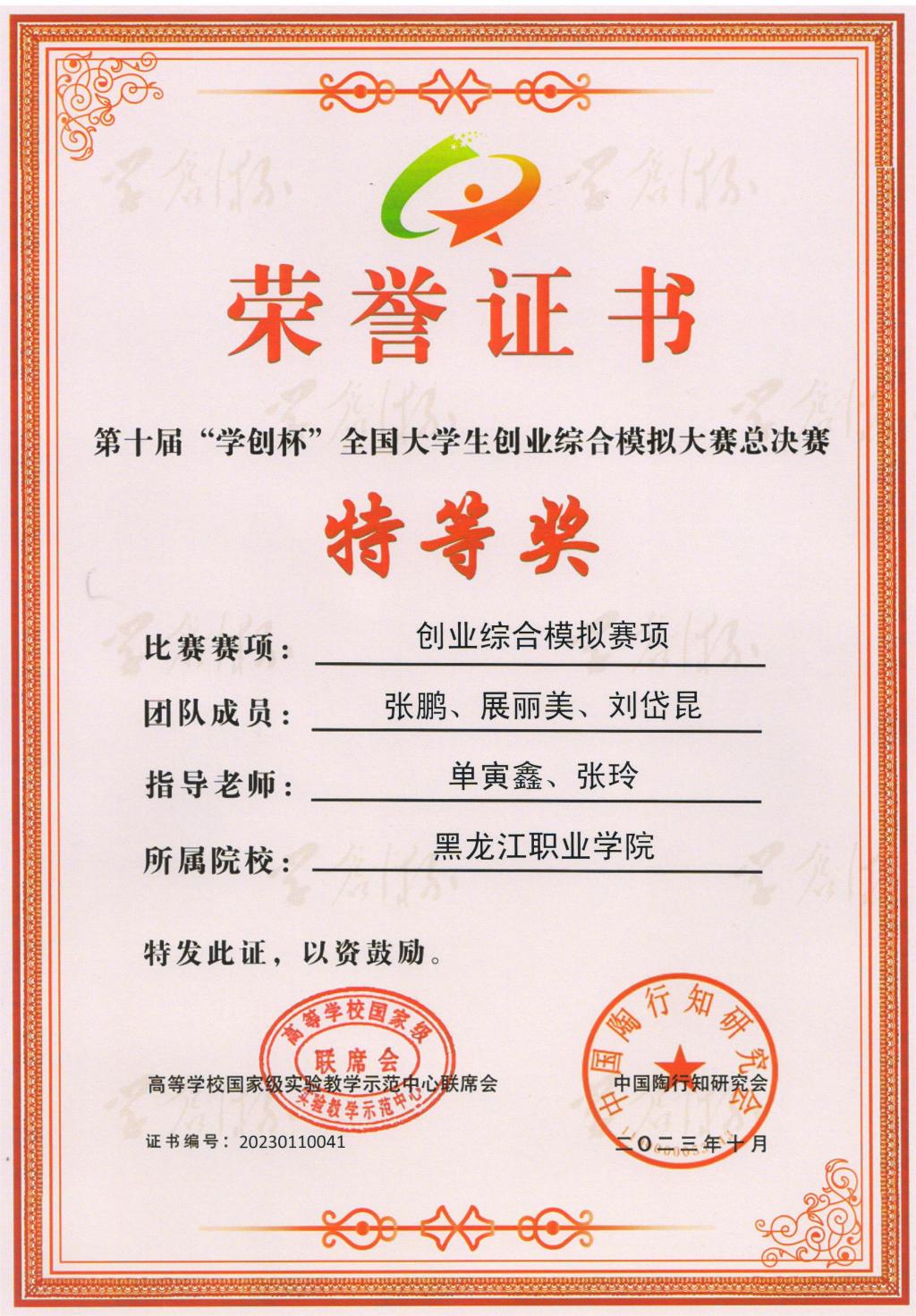 必赢数字商贸学院工商企业管理专业学生张鹏、展丽美和刘岱昆组成的参赛团队在单寅鑫、张玲两位老师的共同指导下,经过前期省赛以及全国半决赛的激烈争夺,成功晋级全国总决赛。经过一天半的激烈角逐,必赢参赛团队最终斩获特等奖,实现了该项赛事在我省高职院校特等奖零的突破。参赛团队被授予“中国大学生学创之星”称号,单寅鑫、张玲老师荣获“最佳指导教师”称号。