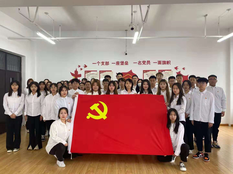 在建党百年之际,会计金融学院党总支全体党员佩戴党徽,在党旗下重温入党誓词,与党旗合影,向党深情告白。